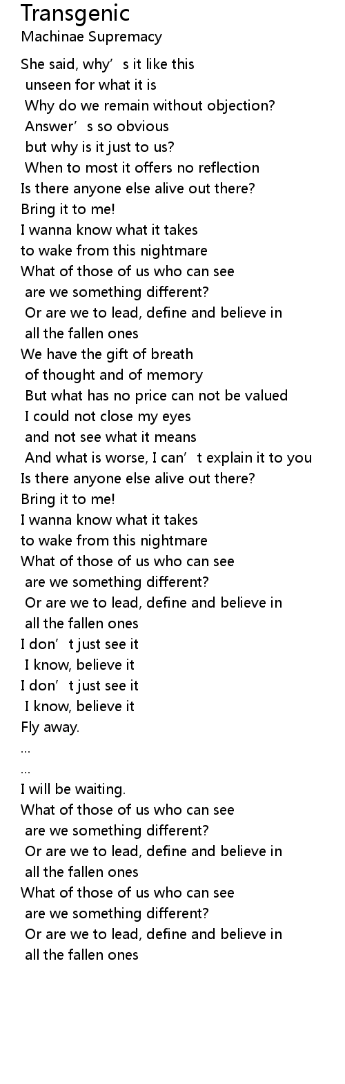 | 歌曲 | Transgenic |