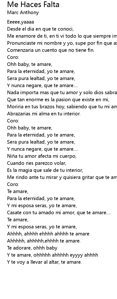 | Y te amare, ohhhhh ahhhhh eyyyy ahhhh | |