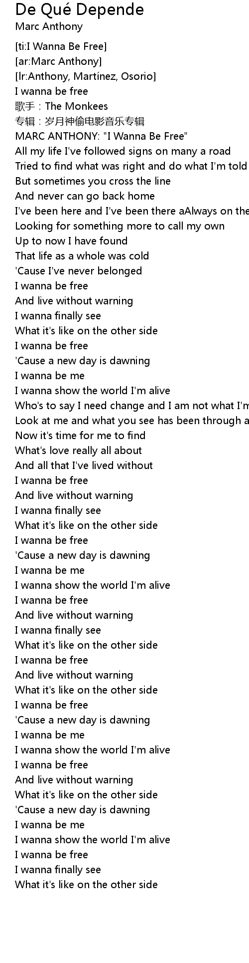 | [00:12.32] | MARC ANTHONY: "I Wanna Be Free" |