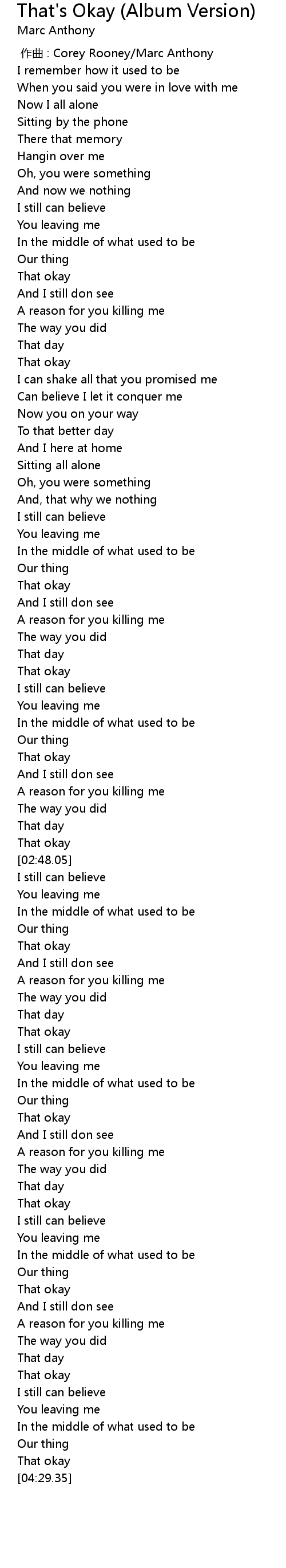 | [04:27.35] | That okay |