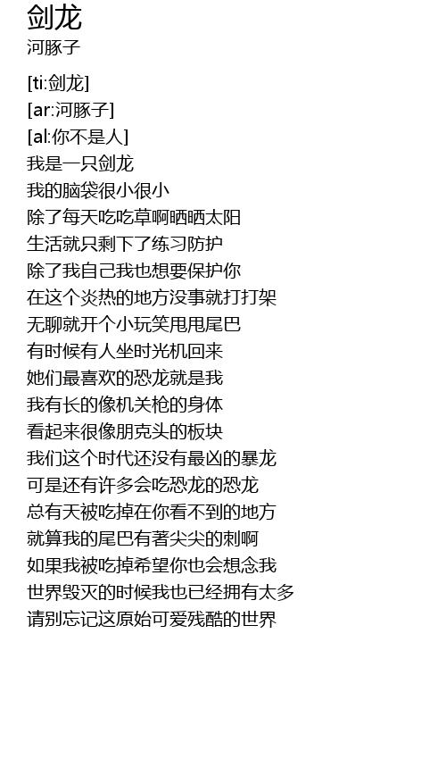 | [00:15.52] | 我是一只剑龙 |