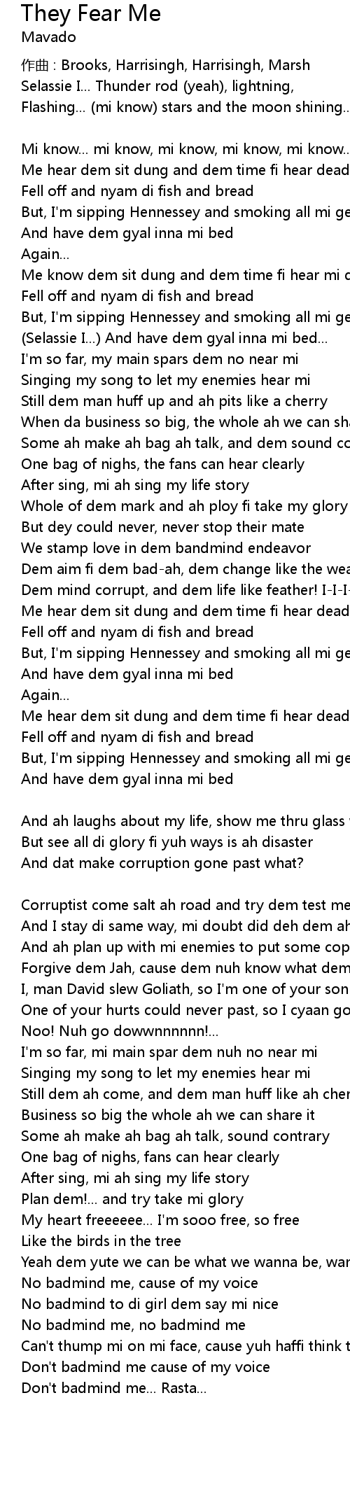 | And I stay di same way, mi doubt did deh dem ah go do mi | |