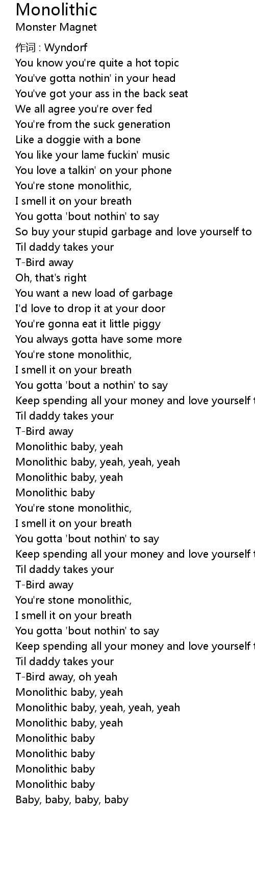 | Monolithic baby, yeah, yeah, yeah | |