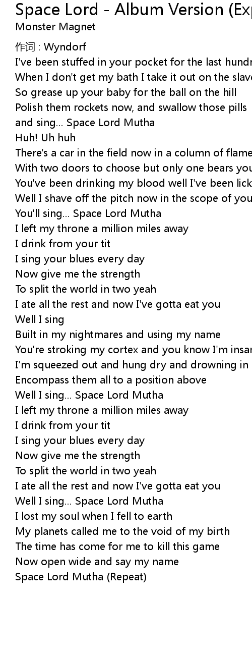 | 歌曲 | Space Lord - Album Version (Explicit) |