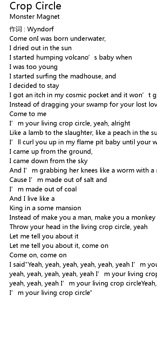 | I said" Yeah, yeah, yeah, yeah, yeah, yeah I' m your living crop circleYeah, yeah, yeah, yeah, yeah, yeah I' m your living crop circleYeah, yeah, yeah, yeah, yeah, yeah I' m your living crop circleYeah, yeah, yeah, yeah, yeah, yeah I' m your living crop circle" |