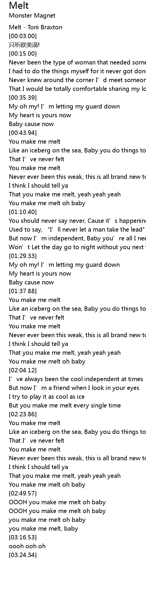 | [01:55.69] | That you make me melt, yeah yeah yeah |