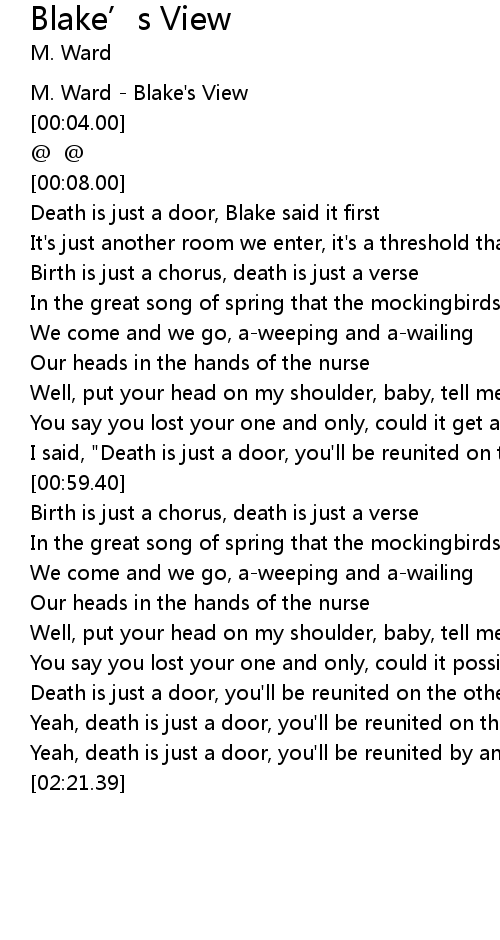 | [00:10.30] | Death is just a door, Blake said it first |