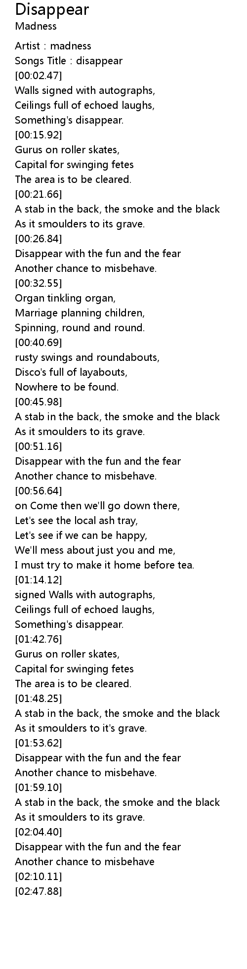 | [00:22.47] | A stab in the back, the smoke and the black |