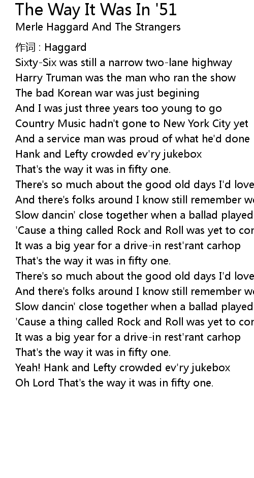 | 歌曲 | The Way It Was In '51 |