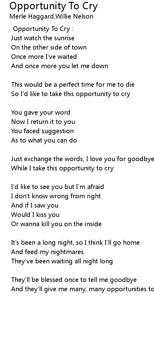 Opportunity To Cry : |