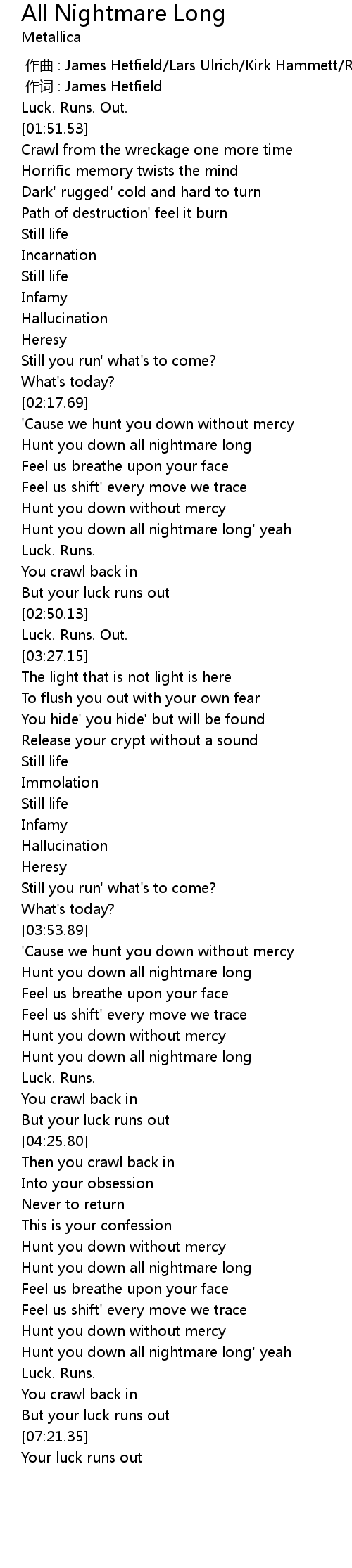 | [07:10.96] | Hunt you down all nightmare long' yeah |