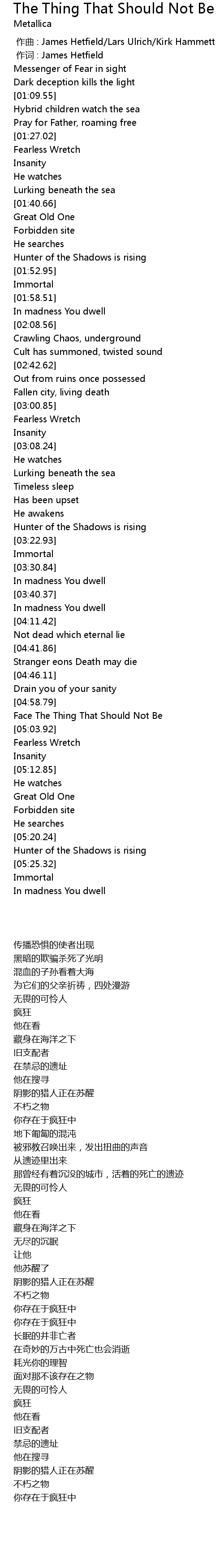 | [00:00.00] | 作曲 : James Hetfield/Lars Ulrich/Kirk Hammett |