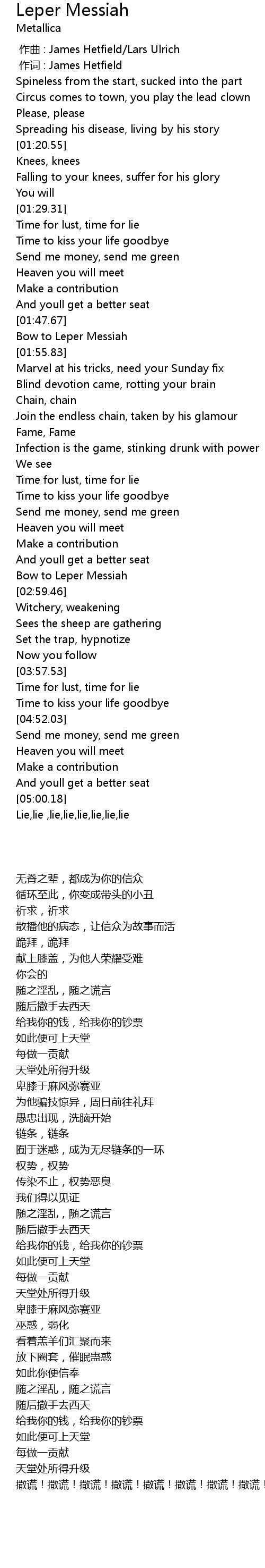 | [05:02.24] | Lie, lie , lie, lie, lie, lie, lie, lie |