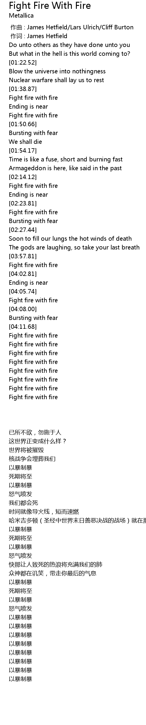 | [00:00.00] | 作曲 : James Hetfield/Lars Ulrich/Cliff Burton |