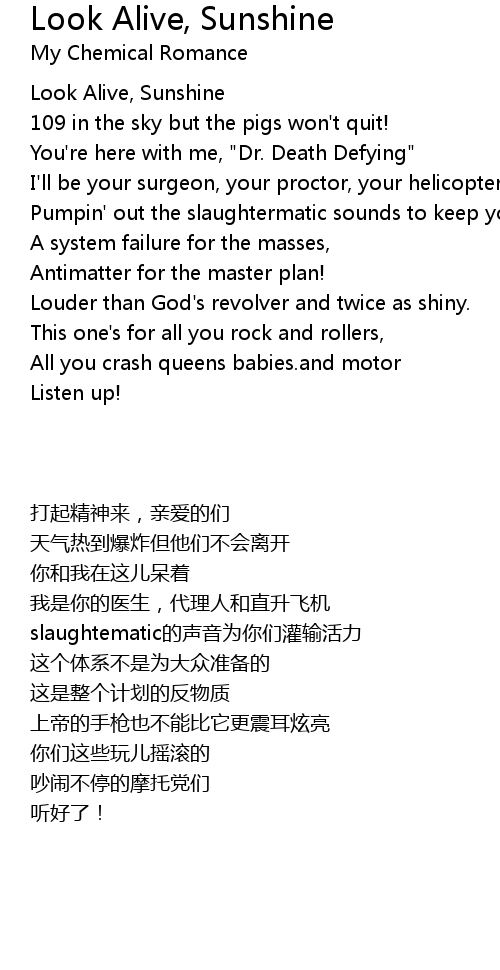 Look Alive, Sunshine |