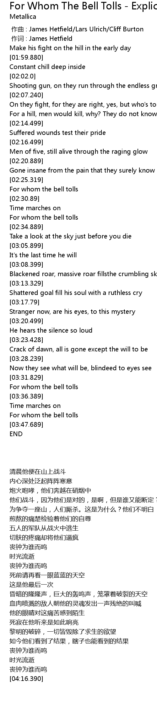 | [00:00.00] | zuo qu : James Hetfield Lars Ulrich Cliff Burton |