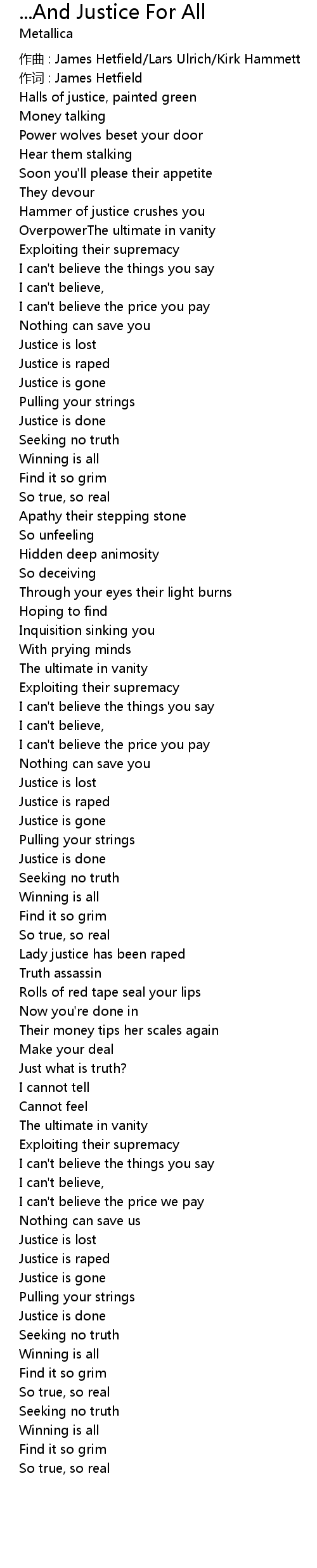 | 作曲 : James Hetfield/Lars Ulrich/Kirk Hammett | |