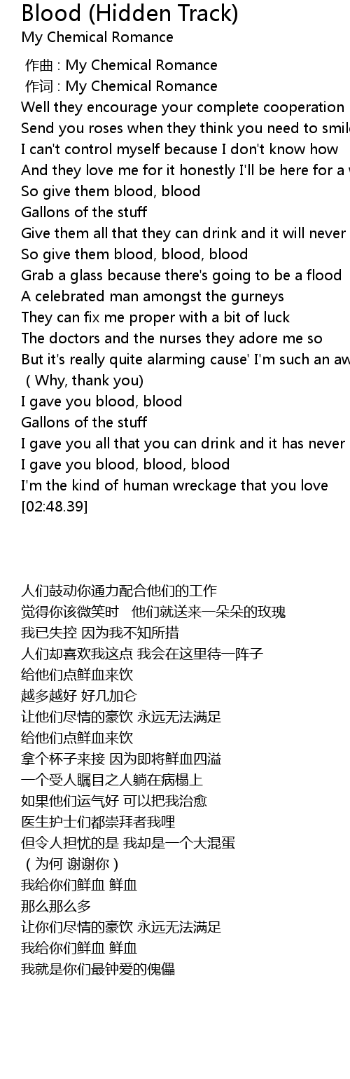 | [02:35.27] | I gave you blood, blood, blood |