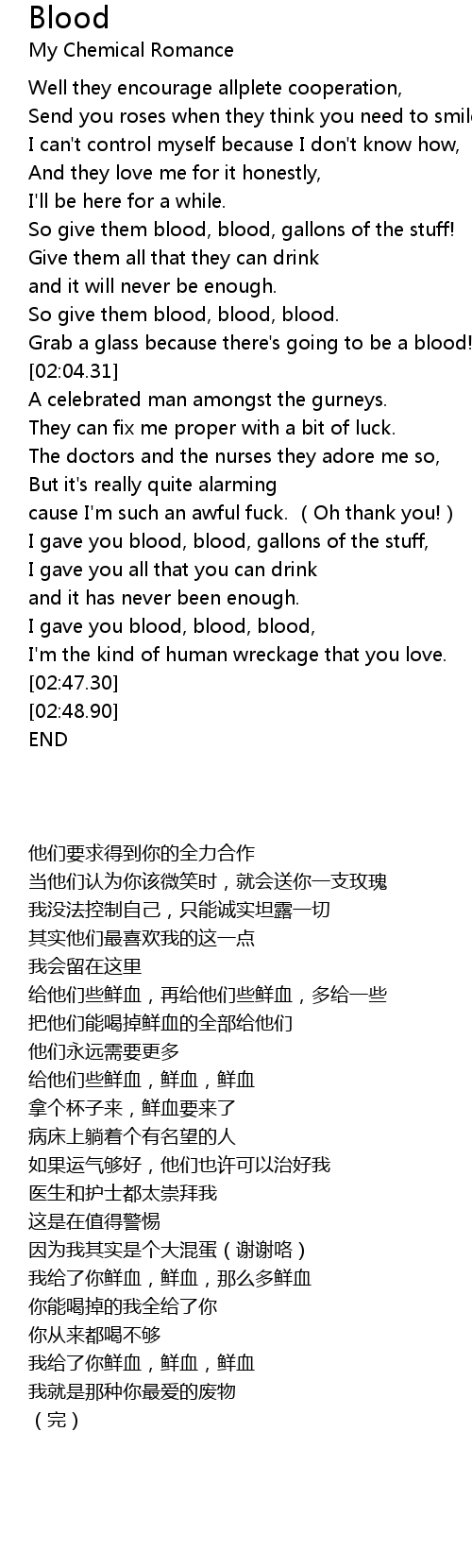 | [02:35.48] | 我给了你鲜血,鲜血,鲜血 |