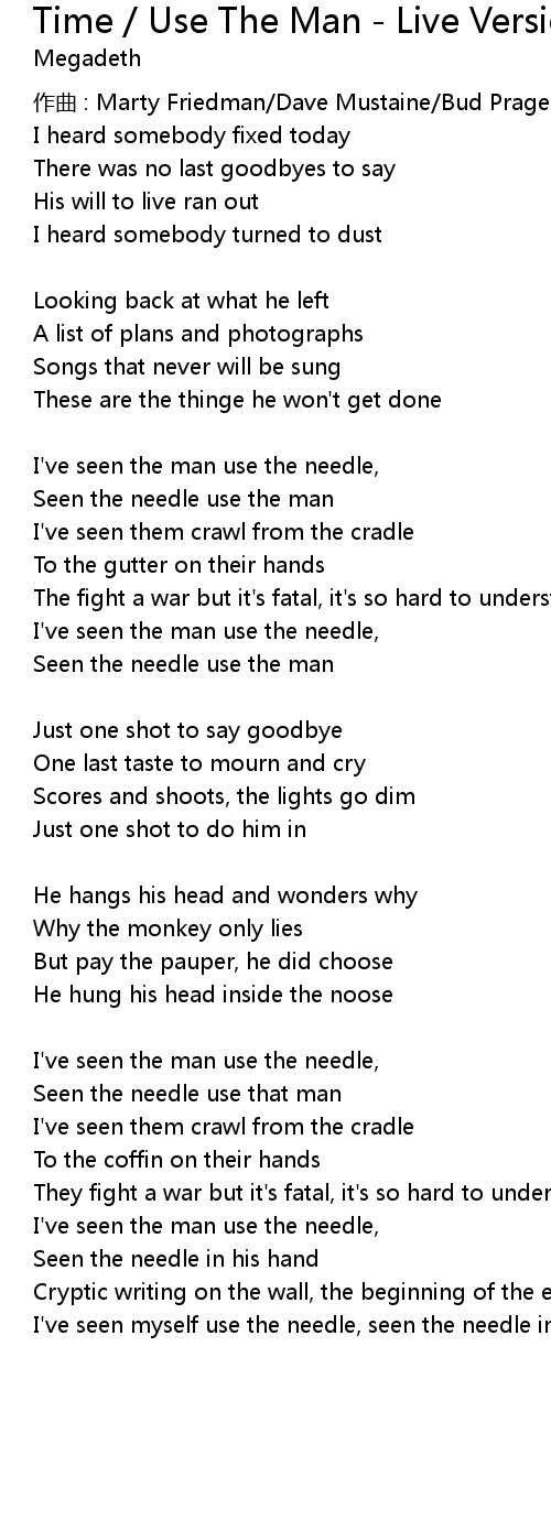 | Seen the needle use that man | |