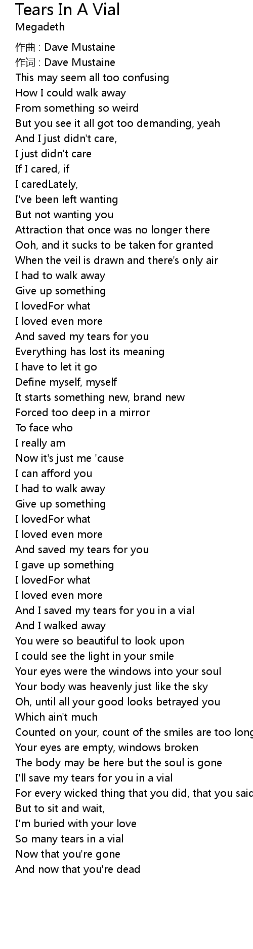 | 歌曲 | Tears In A Vial |