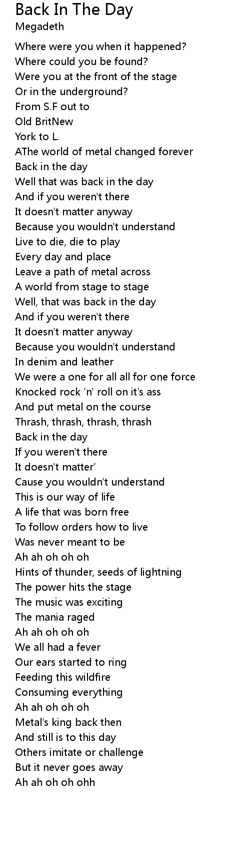 Well that was back in the day |