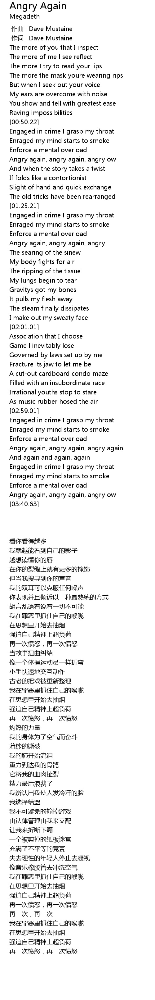 | [03:15.63] | Angry again, angry again, angry again |