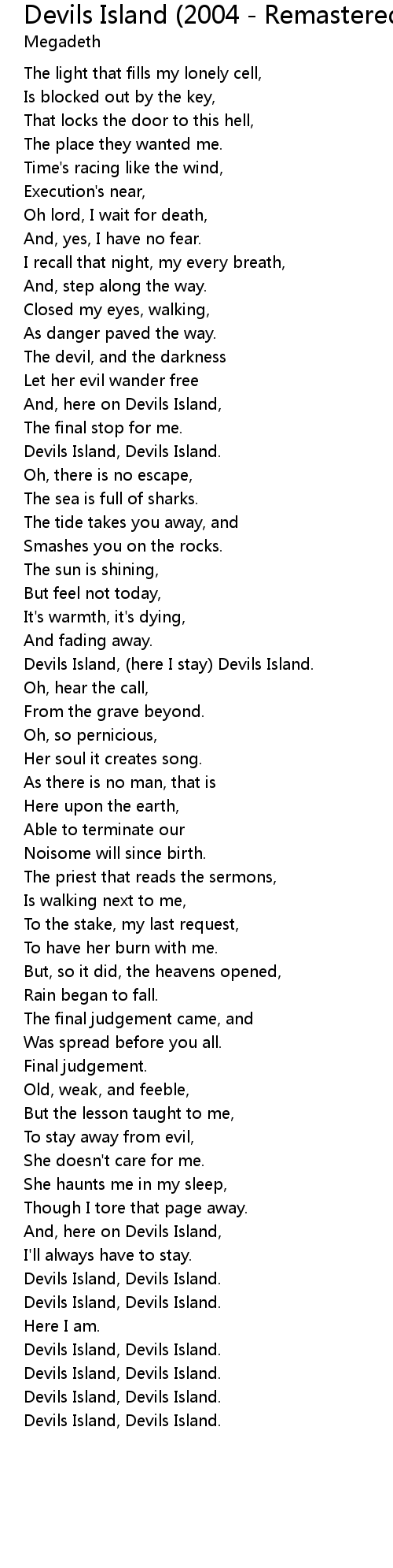 Devils Island, (here I stay) Devils Island. |