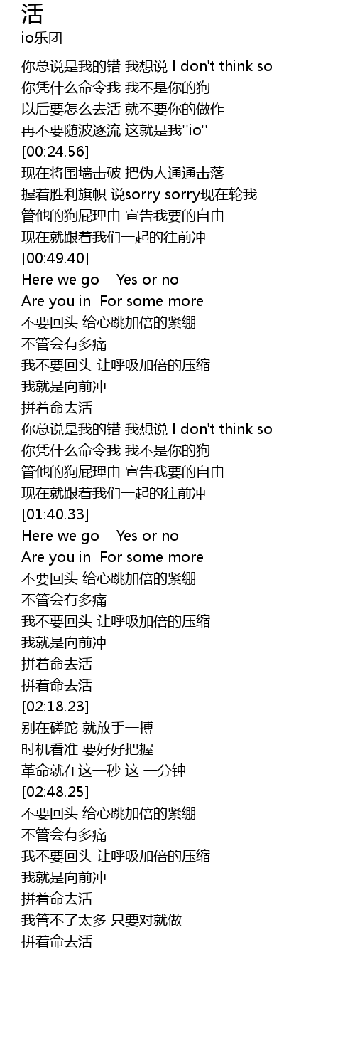 | [02:11.24] | 拼着命去活 |