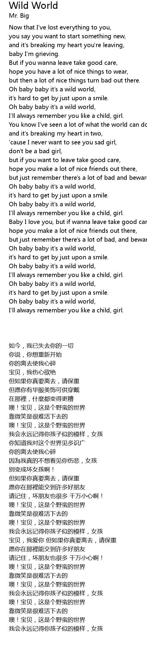 Oh baby baby it's a wild world, |