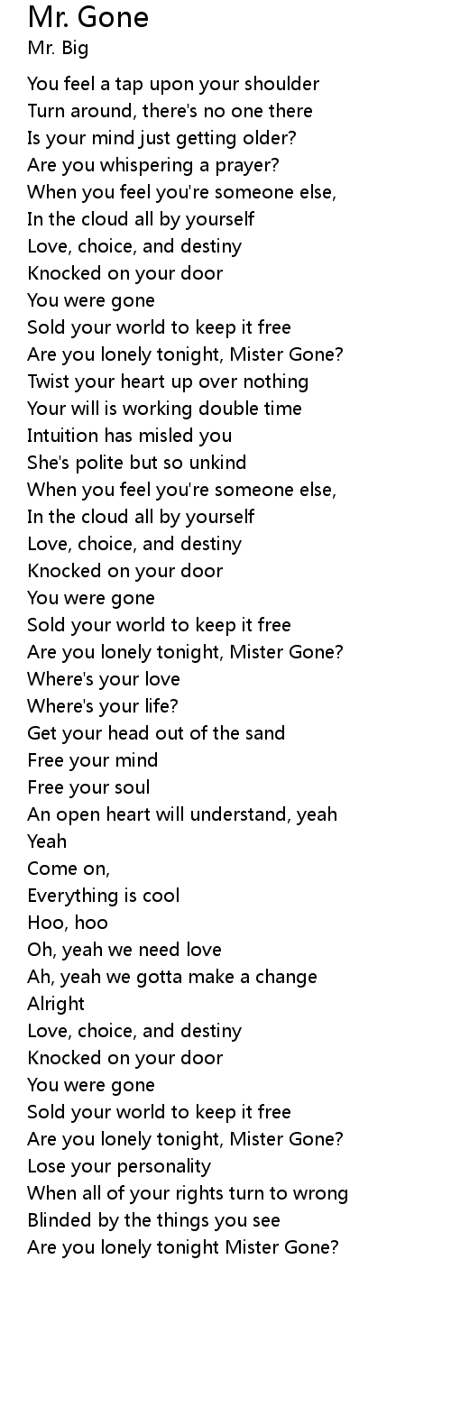Are you lonely tonight, Mister Gone? |