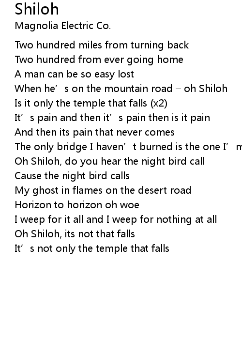 | Oh Shiloh, do you hear the night bird call | |
