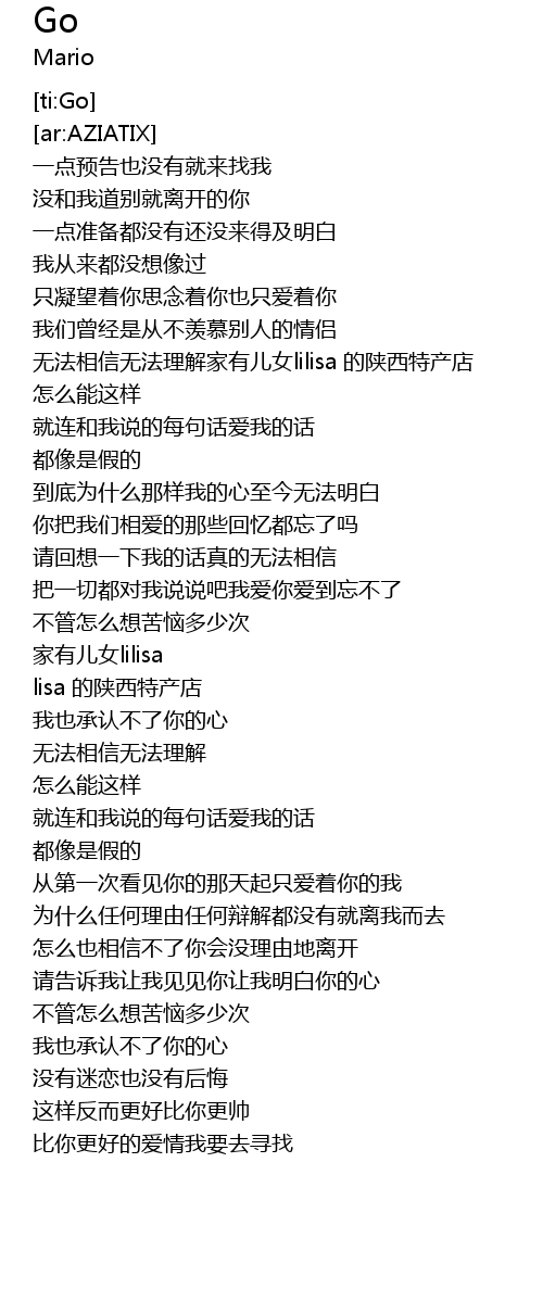 | [01:37.576] | zen me ye xiang xin bu liao ni hui mei li you di li kai |