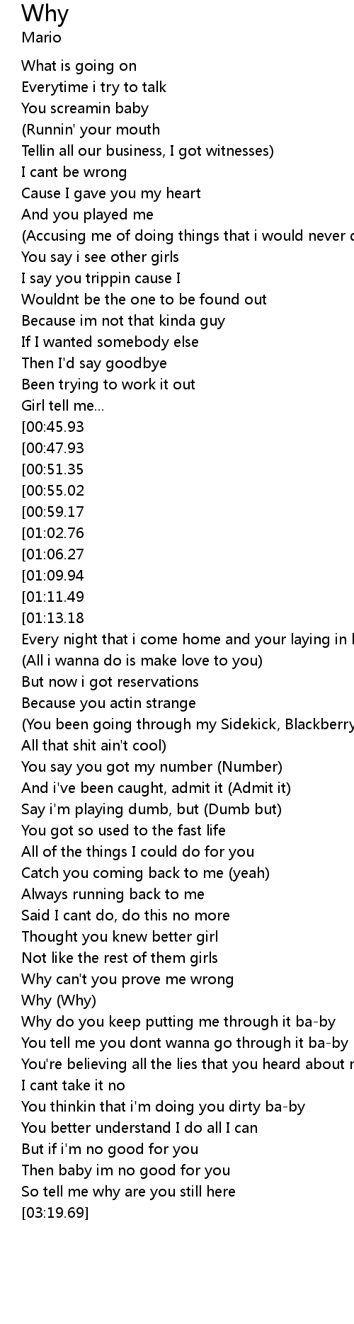 | [01:47.94][00:47.93] | Why do you keep putting me through it ba-by |