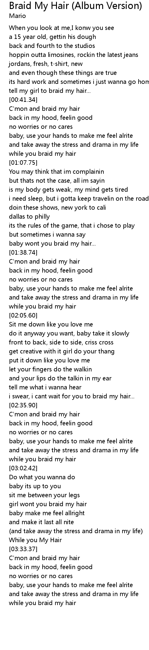 | [01:35.96] | baby wont you braid my hair... |