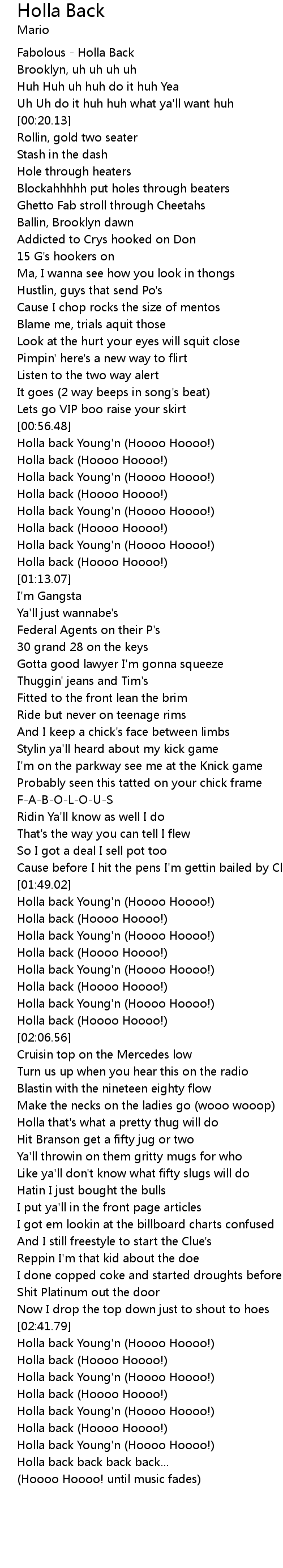 | [00:02.96] | Fabolous - Holla Back |