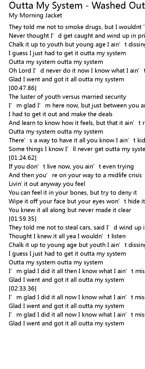 | [00:30.20] | Outta my system outta my system |