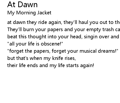 | at dawn they ride again, they'll haul you out to the streets. | |
