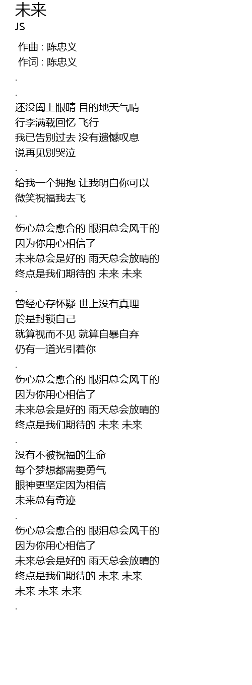 | [02:53.57] | 终点是我们期待的 未来 未来 |