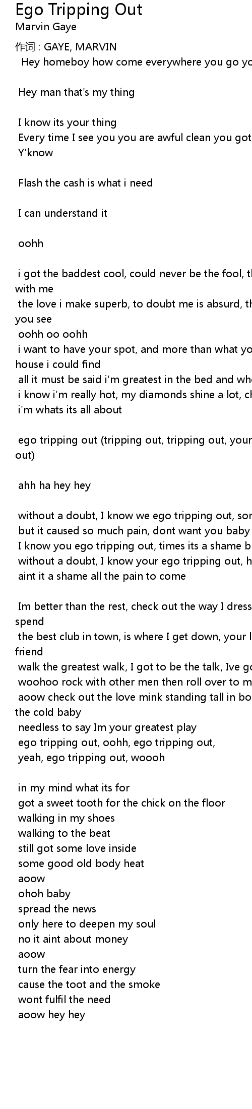 | yeah, ego tripping out, woooh | |