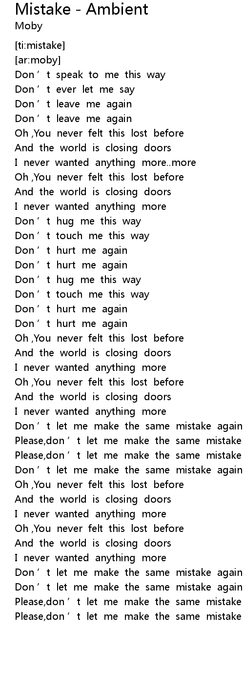 | [02:04.307] | Don ' t let me make the same mistake again |