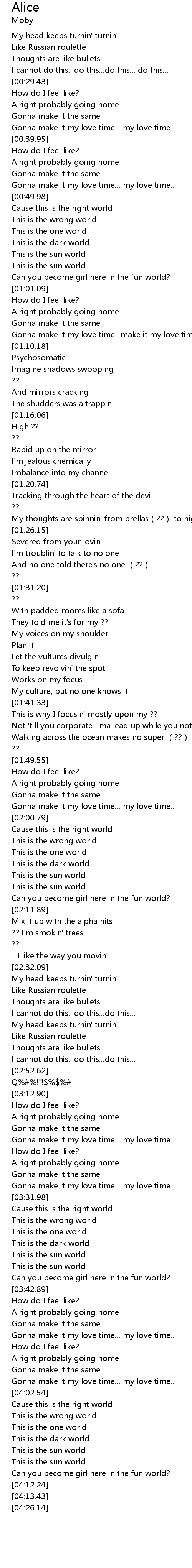 | [00:52.52] | This is the wrong world |