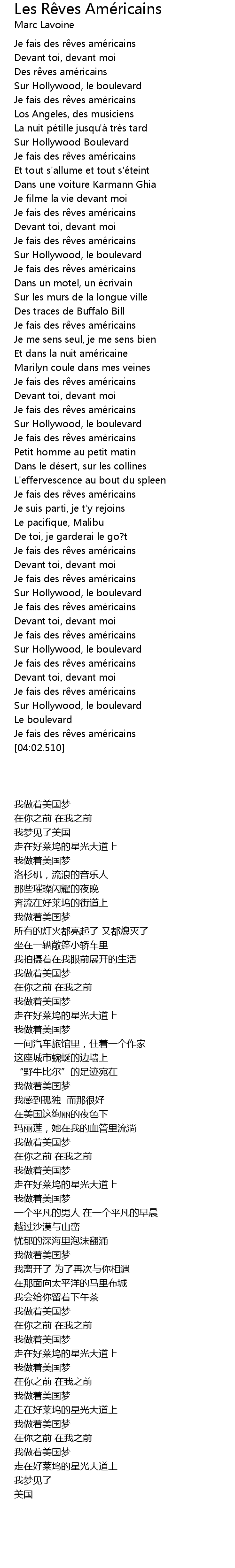 | [03:51.000] | Je fais des r ves amé ricains |