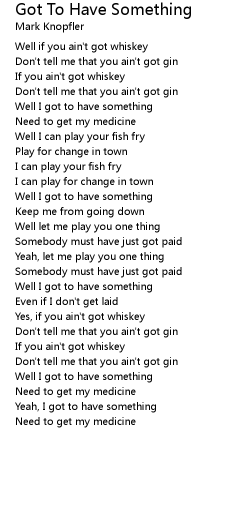 Well if you ain't got whiskey |