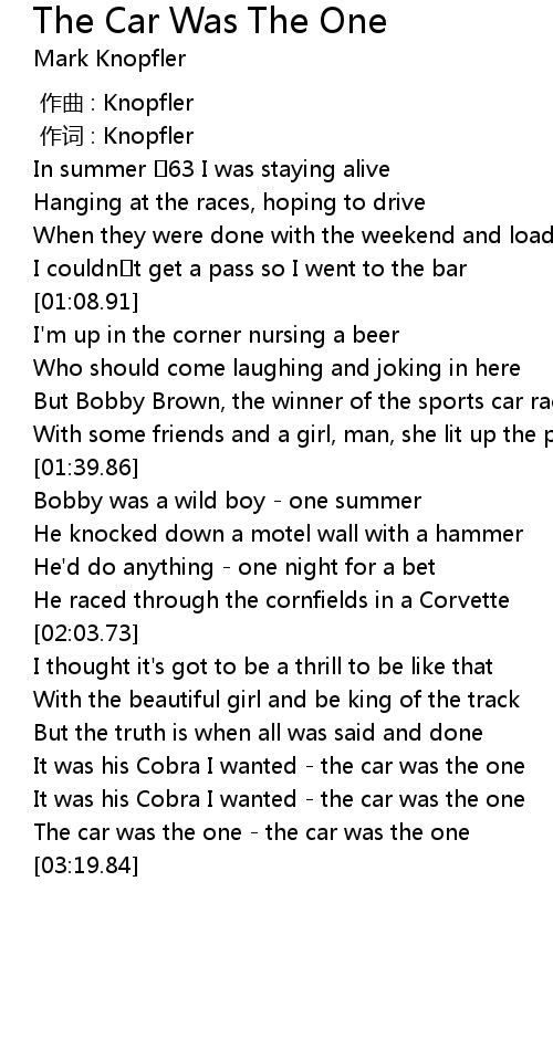 | [02:46.35] | It was his Cobra I wanted the car was the one |