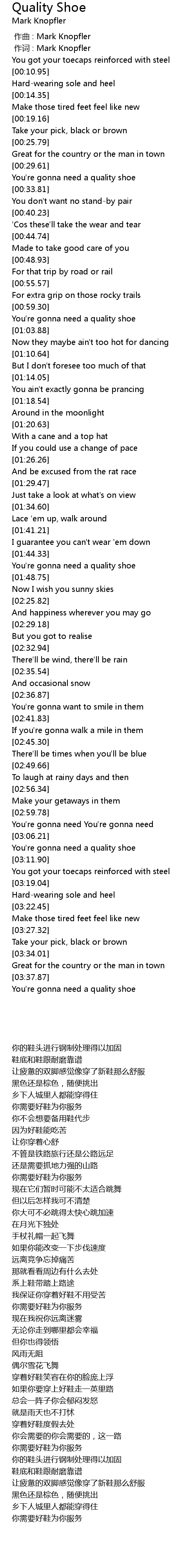 | [00:00.00] | zuo qu : Mark Knopfler |