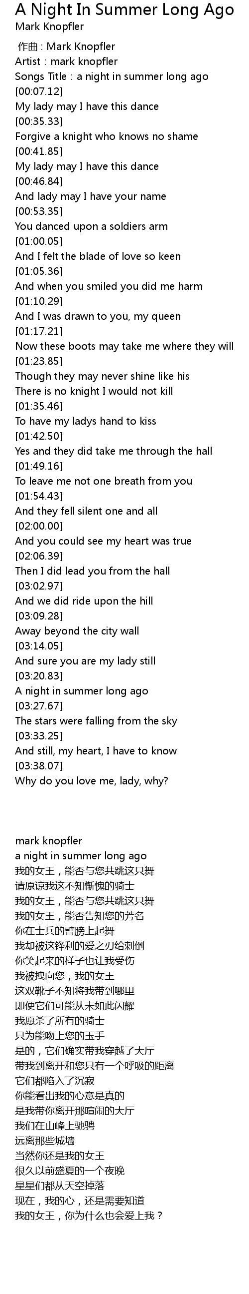 | [00:00.00] | zuo qu : Mark Knopfler |