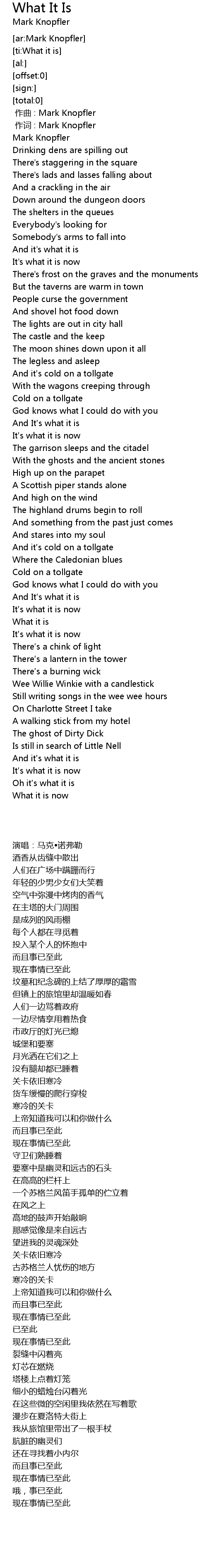 | [00:00.00] | zuo qu : Mark Knopfler |