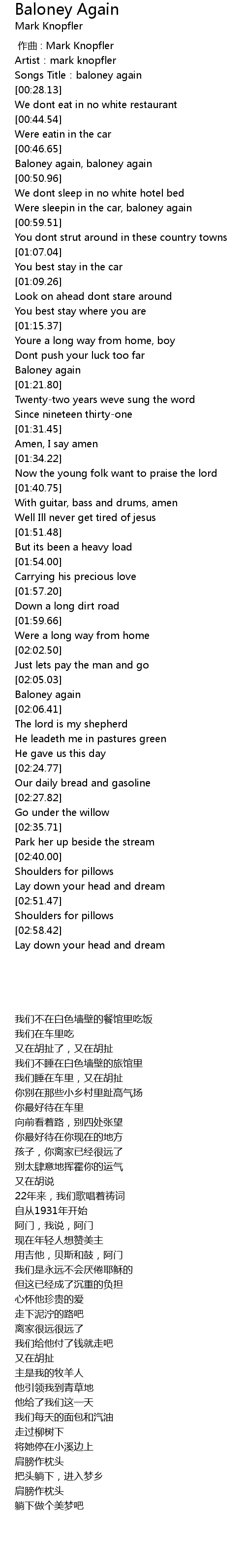 | [00:00.00] | zuo qu : Mark Knopfler |
