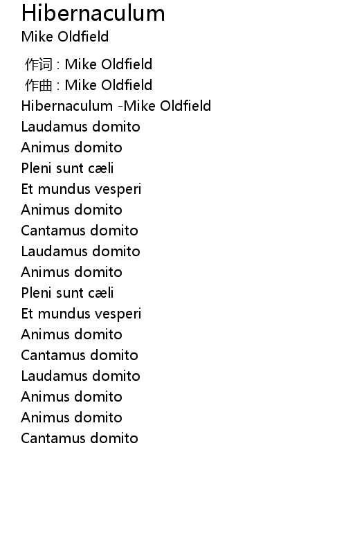| [00:00.000] | 作词 : Mike Oldfield |